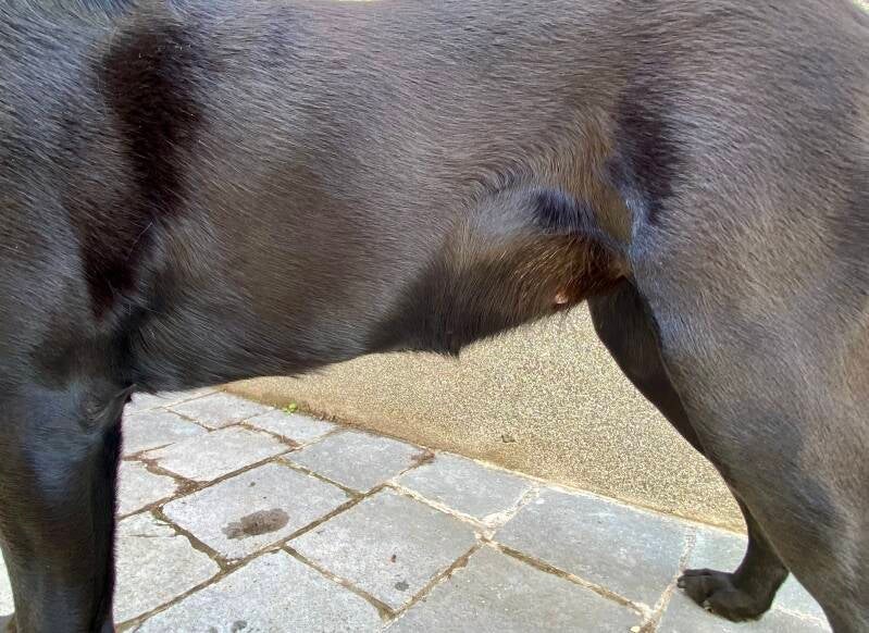 Das Fell an den Zitzen fällt aus und das Gesäuge bildet sich Tag für Tag ein Stückchen mehr aus. Blue geht's sehr gut.